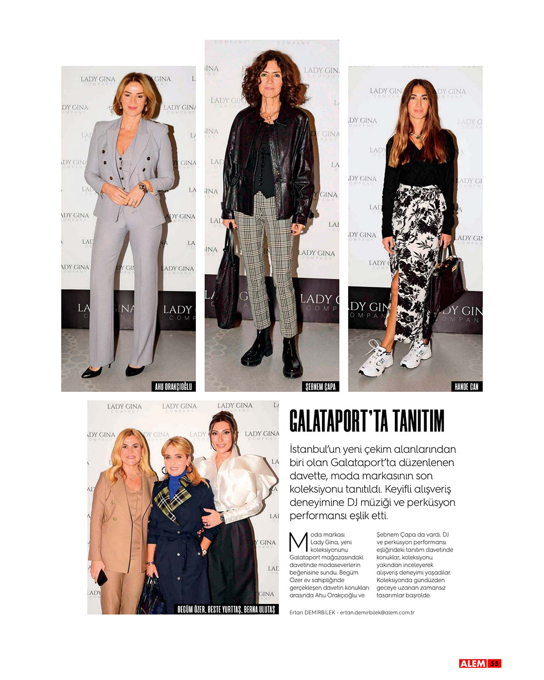Moda sektörüne yeni bir doluk getirmeyi hedefleyen Lady Gina markasının Galataport İstanbul'daki mağazası özel bir davetle açıldı.