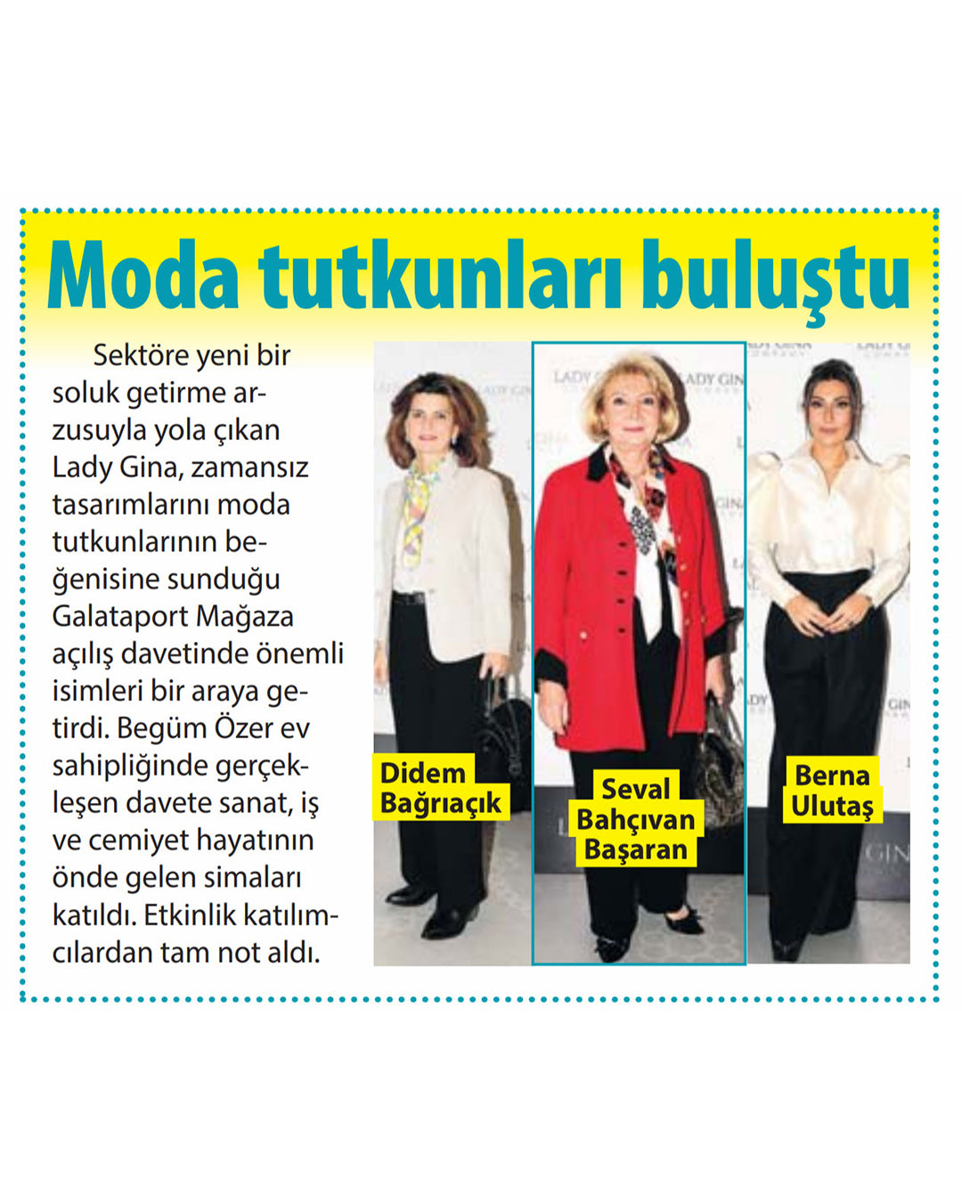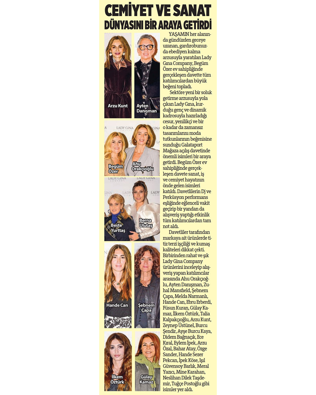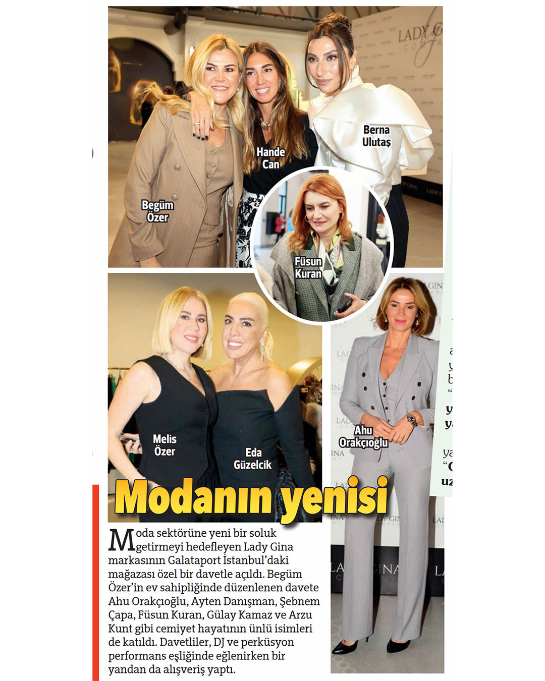 Sektöre yeni bir soluk getirme arzusuyla yola çıkan Lady Gina, zamansız tasarımlarını moda tutkunlarının beğenisine sunduğu Galataport Mağaza açılış davetinde önemli isimleri bir araya getirdi.