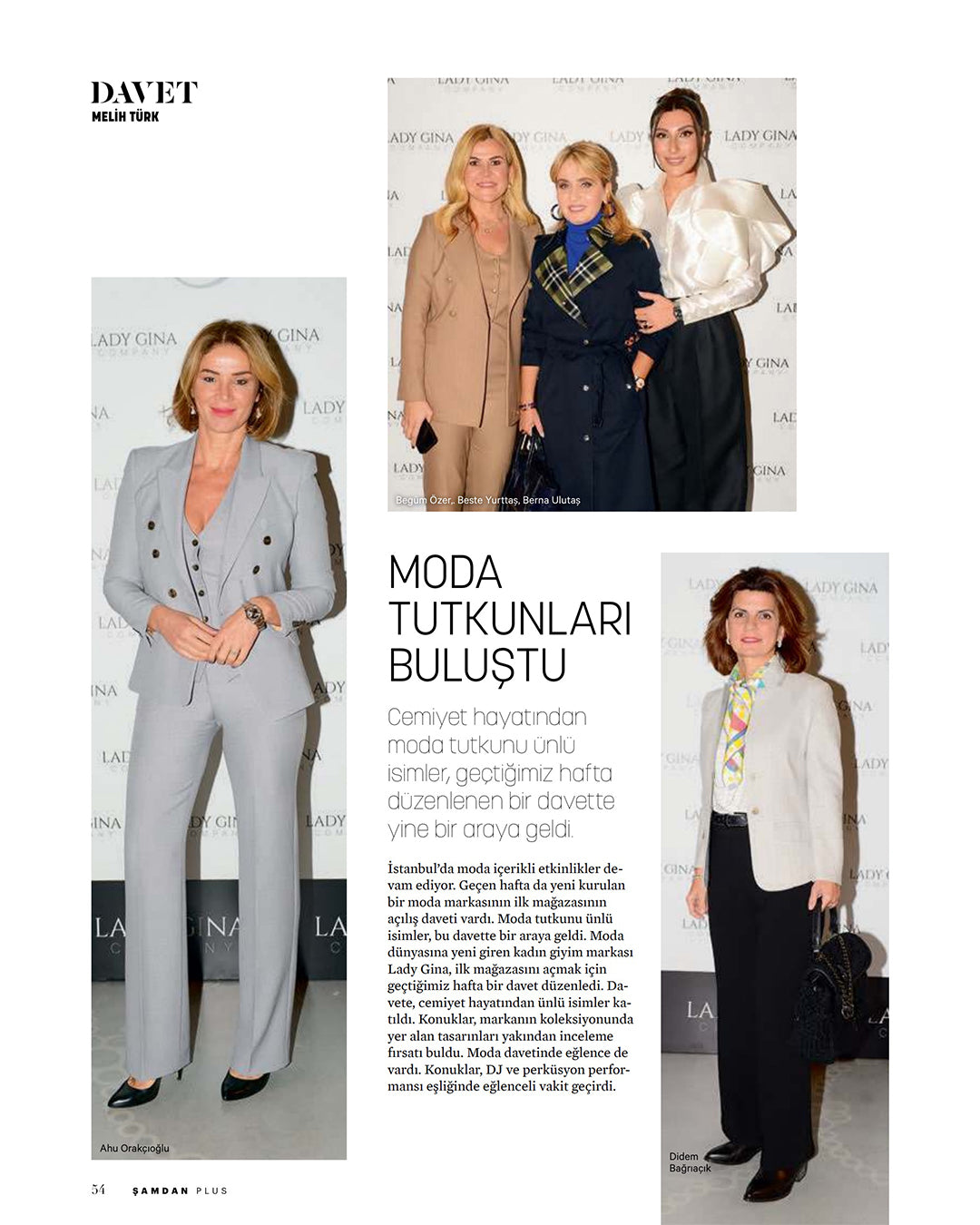 Yaşamın her alanında gündüzünden geceye uzanan, gardırobunuzda edebiyen kalma arzusuyla yaratılan kurucusu Berna Ulutaş olan Lady Gina Company gerçekleşen davette tüm katılımcılardan büyük beğeni topladı.